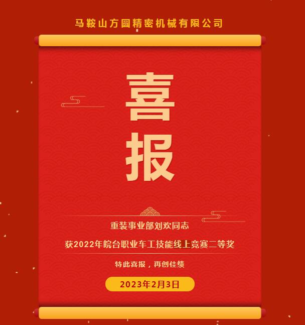 喜報(bào)|公司重裝事業(yè)部員工劉歡獲皖臺技能線上競賽榮譽(yù)!