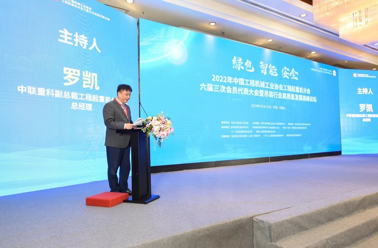 中國(guó)工程機(jī)械工業(yè)協(xié)會(huì)工程起重機(jī)分會(huì)秘書(shū)長(zhǎng)李曉飛進(jìn)行了2022年度工作總結(jié)及2023年工作規(guī)劃的匯報(bào)。本次大會(huì)還隆重進(jìn)行了工程起重機(jī)行業(yè)專(zhuān)家頒證儀式,以表彰年度各受聘專(zhuān)家對(duì)行業(yè)高質(zhì)發(fā)展所作出的貢獻(xiàn)和示范效應(yīng),我司設(shè)計(jì)部部長(zhǎng)曹?chē)?guó)蘭獲此殊榮。大會(huì)第一階段由中聯(lián)重科副總裁工程起重機(jī)分公司總經(jīng)理羅凱主持。