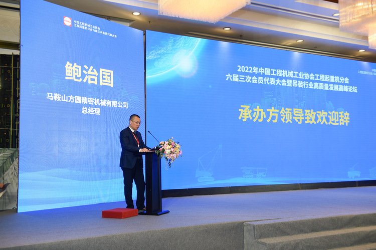 大會(huì)首先分別由主辦方中國(guó)工程機(jī)械工業(yè)協(xié)會(huì)副會(huì)長(zhǎng)、雙碳委員會(huì)會(huì)長(zhǎng)、工程起重機(jī)分會(huì)會(huì)長(zhǎng)李建友先生和承辦方我司總經(jīng)理鮑治國(guó)先生進(jìn)行線上、線下致辭。在鮑總的致辭中,他詳細(xì)介紹了方圓精密的一系列發(fā)展實(shí)力和技術(shù)成果。面對(duì)制造業(yè)升級(jí)的必然趨勢(shì),鮑總表示企業(yè)發(fā)展要著眼于未來(lái),為提高企業(yè)核心競(jìng)爭(zhēng)力和品牌實(shí)力,方圓立足于行業(yè)發(fā)展需求,緊抓智能制造大勢(shì),超前布局?jǐn)?shù)字化技術(shù)和智能生產(chǎn),以實(shí)現(xiàn)企業(yè)的降本提質(zhì)增效。