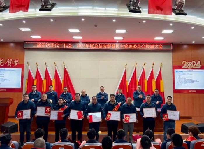 大會首先由黨委書記、工會主席胡闖作《2023年度工會工作報告》,他總結(jié)了2023公司工會工作成績與亮點提出了下一年的工作方向。表彰環(huán)節(jié),由總經(jīng)理助理李厚生宣讀表彰文件,公司經(jīng)營層領(lǐng)導給一年以來對公司付出辛勤努力的個人及集體進行頒獎。