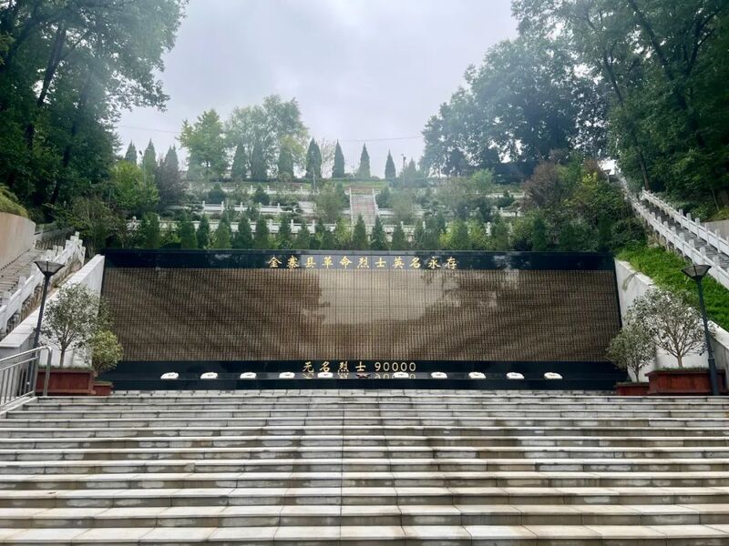 金寨紅軍廣場(chǎng)依山而建,每一段臺(tái)階的數(shù)量各有不同,代表著金寨縣為中國革命作出的不同貢獻(xiàn)——59級(jí)臺(tái)階,寓意金寨縣誕生的59位共和國開國將軍;50級(jí)臺(tái)階,寓意著被追認(rèn)的金寨籍縣團(tuán)級(jí)以上革命烈士500余位;49級(jí)臺(tái)階,寓意著金寨縣于1949年全境解放;10級(jí)臺(tái)階,寓意著革命戰(zhàn)爭(zhēng)年代金寨縣10萬青年參軍征戰(zhàn),為國捐軀……邁向階梯盡頭,“金寨縣革命烈士紀(jì)念塔”高高聳立,劉伯承元帥題寫的“燎原之火”四個(gè)鍍金大字刻在24米高的紀(jì)念塔正面,默默地訴說著大別山老區(qū)為中國革命事業(yè)作出的不可磨滅的貢獻(xiàn)。