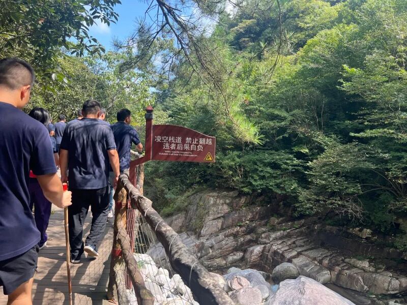 參觀結(jié)束后,全體黨員前往天堂寨景區(qū),游覽華東最后一片原始森林。身處天然氧吧,體驗(yàn)白馬峰懸崖絕壁,蜿蜒曲折的高空棧道,徒步在白馬大峽谷山澗環(huán)繞的林間棧道,領(lǐng)略大自然的奇異景色,體會(huì)山高風(fēng)清的暢快之意,感受峽谷探幽的浪漫風(fēng)情。
