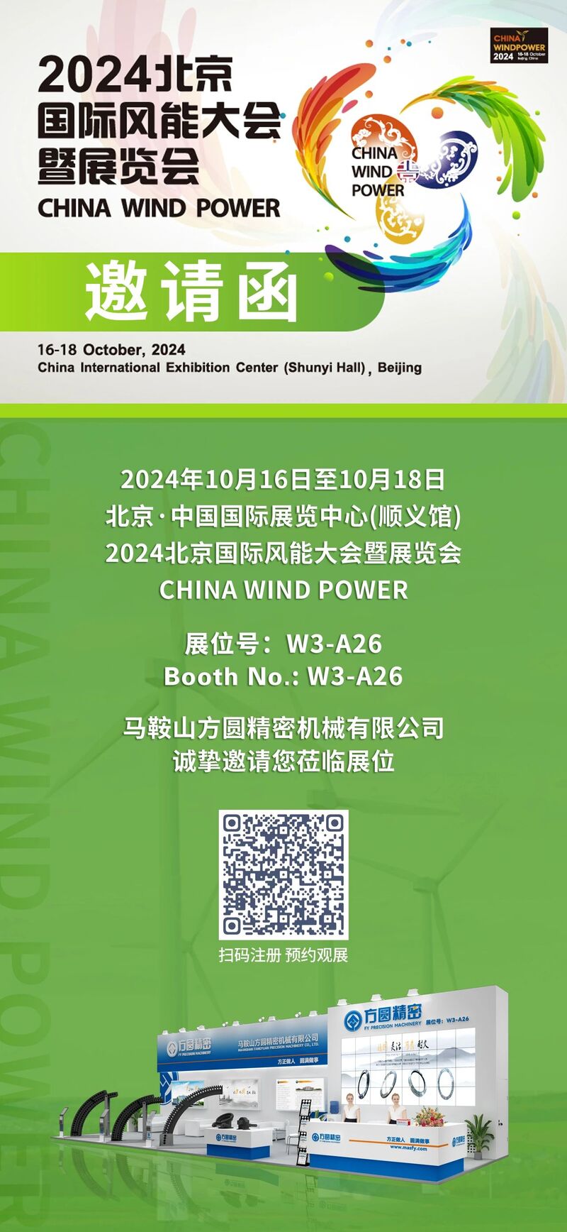 我們誠(chéng)邀您蒞臨北京國(guó)際風(fēng)能大會(huì)暨展覽會(huì)(CWP)馬鞍山方圓精密有限公司W3-A26現(xiàn)場(chǎng)展位,共謀發(fā)展!