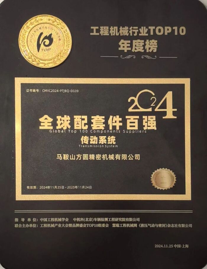 展會(huì)前夕,我司還受邀參加了第十五屆工程機(jī)械品牌盛會(huì),在會(huì)議現(xiàn)場(chǎng)我司榮獲2024年度全球工程機(jī)械配套件百?gòu)?qiáng)榜:傳動(dòng)系統(tǒng)TOP10榮譽(yù)榜單。
