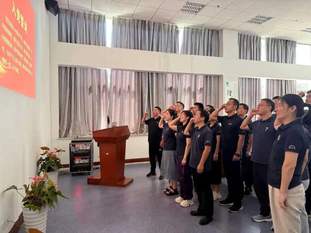 在閱兵過程中,黨員們被整齊劃一的受閱方隊、先進精良的武器裝備所震撼,新型坦克、殲擊機、艦載機、導彈、無人機等國產主戰(zhàn)裝備依次亮相,展示了我國國防和軍隊現(xiàn)代化建設的輝煌成就,讓黨員們倍感振奮。而抗戰(zhàn)老戰(zhàn)士方隊的出現(xiàn),更是讓大家深受感動,他們是歷史的見證者,是民族精神的傳承者,他們的出現(xiàn)更讓大家更加深刻地認識到今天和平生活的來之不易。觀看結束后,黨員們面向入黨誓詞,高舉右手,再次莊嚴宣誓:“我志愿加入中國共產黨……”鏗鏘有力的誓言在現(xiàn)場回蕩,每一位黨員都神情莊重,眼神中透露出堅定的信念和對黨的無限忠誠。